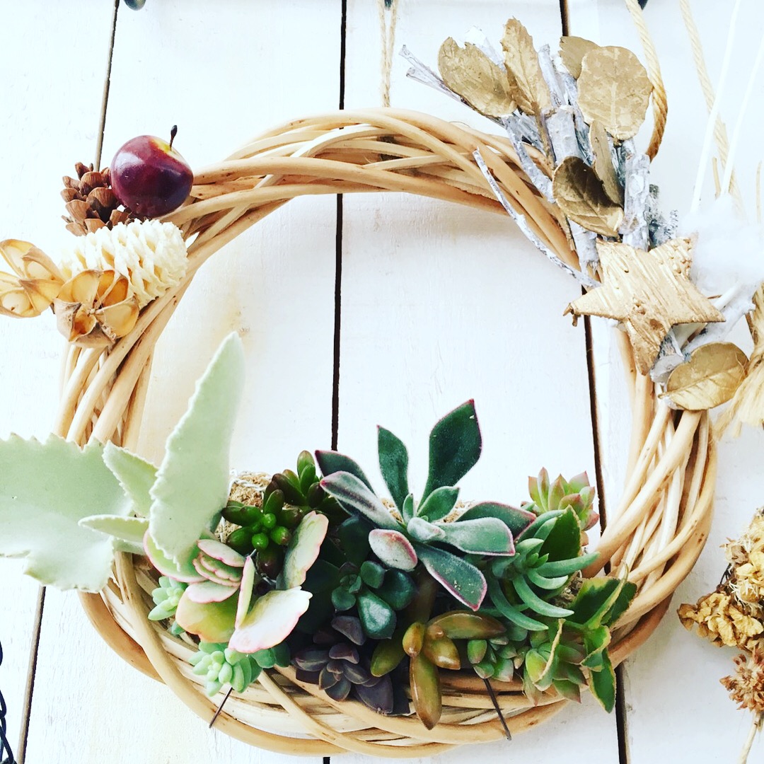 確か、寄せ植え教室でかなりの期間作っていた人気のクリスマスリースです。懐かしの作品ですね。
