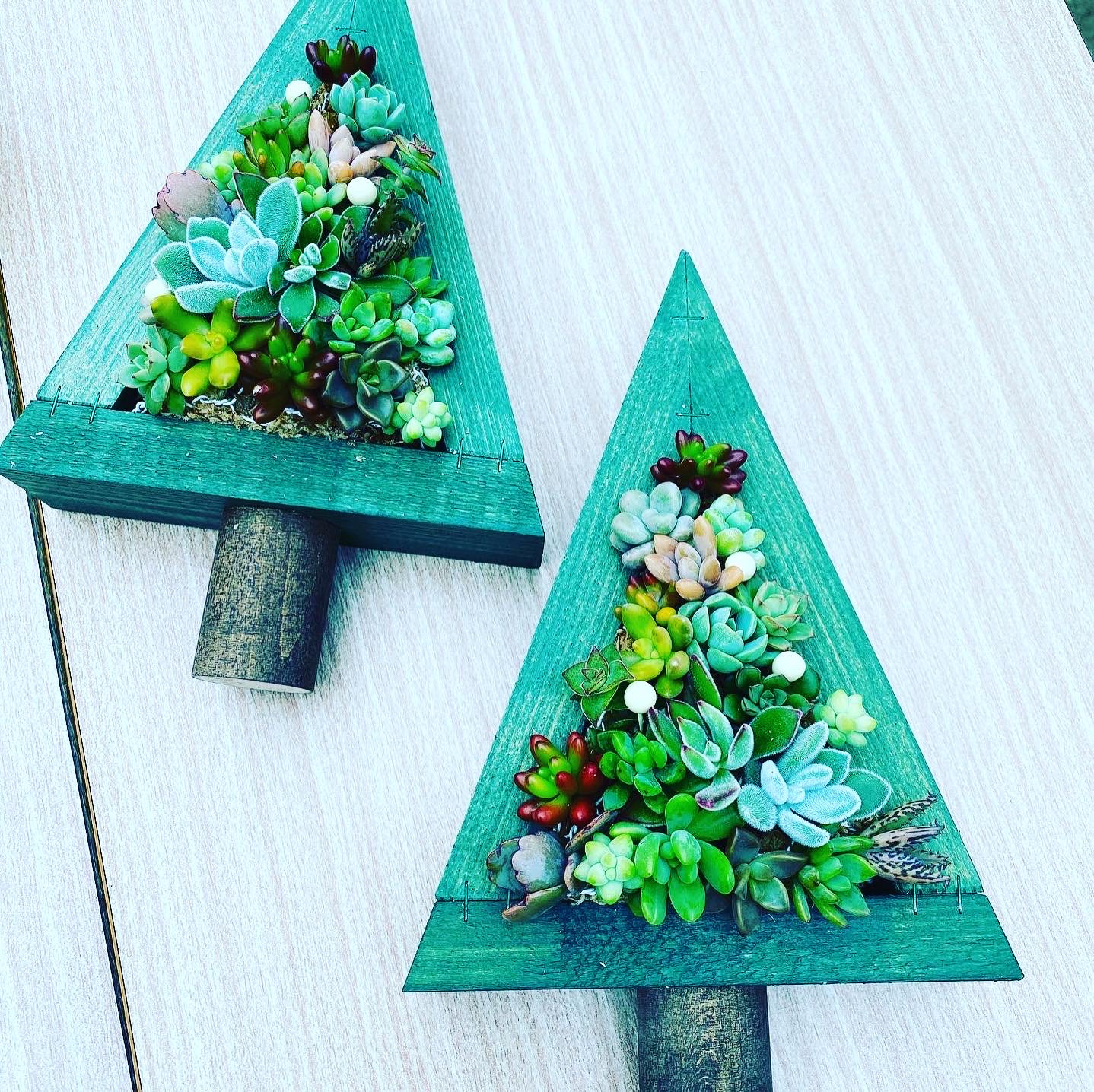 クリスマスに合わせた寄せ植えを作るため、多肉植物をカット苗で植える方法でツリー型器に植えこみました。結構人気のかたちでしたね。
