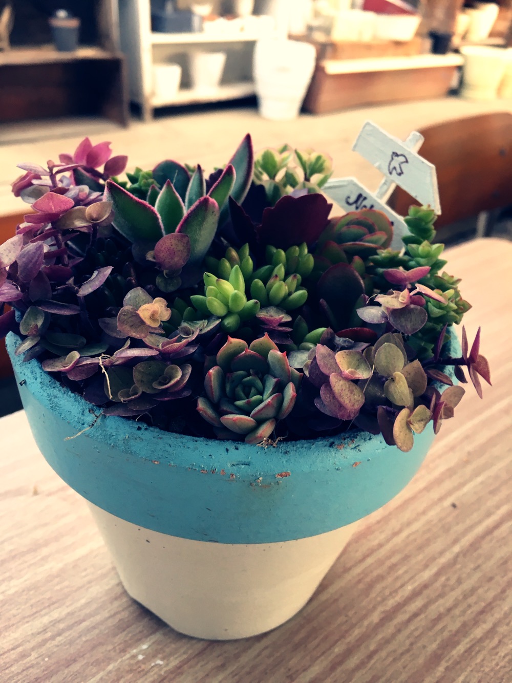素焼きペイント鉢の寄せ植え